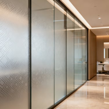 Conforto, Privacidade e Segurança em Empresas) A. Privacidade (jateado/fosco) para portas e divisórias.